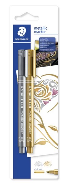 For opaque writing and decorating on light and dark paper as well as on card. Ideal for scrapbooking and greeting cards. No pumping or shaking required. Can be easily wiped off smooth surfaces like glass and mirrors using a damp cloth. Line width approx. 1-2 mm. Metallic marker pen with fibre-tip.